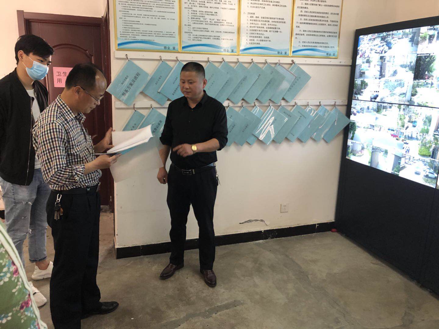 2020年4月30日上午,集團(tuán)公司王總帶隊(duì),在物業(yè)公司相關(guān)人員的陪同下,先后來到圣莊安置房、趙莊安置房、東湖花園公租房、白鷺棲園公租房、岱河花園公租房和2012公租房,實(shí)地查看各小區(qū)疫情防控工作,檢查組深入疫情防控執(zhí)勤點(diǎn)、消防、視頻監(jiān)控室等處認(rèn)真查看每個(gè)區(qū)域的疫情防控情況、消防安全設(shè)施、用電安全、監(jiān)控等設(shè)備運(yùn)行情況,檢查過程中,通皓物業(yè)公司下轄的物業(yè)管理項(xiàng)目防控秩序井然,物業(yè)領(lǐng)導(dǎo)及管理人員均能按照排班要求按時(shí)到現(xiàn)場(chǎng)巡視檢查,各出入口、執(zhí)勤點(diǎn)防控措施到位,值守人員到崗情況正常,視頻監(jiān)控室運(yùn)行正常,并有專人值守。